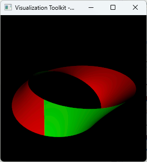 //#include <vtkParametricMobius.h> //#include <vtkParametricFunctionSource.h> // メビウス vtkNew<vtkParametricMobius> mobius; mobius->SetRadius(5.0); const double halfWidth = 2.0; mobius->SetMinimumV(-halfWidth); mobius->SetMaximumV(+halfWidth); vtkNew<vtkParametricFunctionSource> parametricSource; parametricSource->SetParametricFunction(mobius); parametricSource->SetUResolution(100); parametricSource->SetVResolution(30); parametricSource->Update(); vtkNew<vtkPolyDataMapper> mapper; mapper->SetInputConnection(parametricSource->GetOutputPort()); vtkNew<vtkActor> actor; actor->SetMapper(mapper);